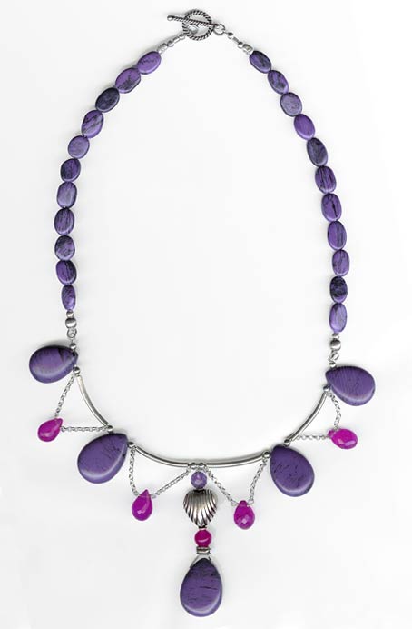 Item #0530 Purple Resin Necklace Purple Resin (M), Ruby Quartz, Amethyst, Sterling Silver Beads, Links, Chain & Toggle Clasp. Length 16"