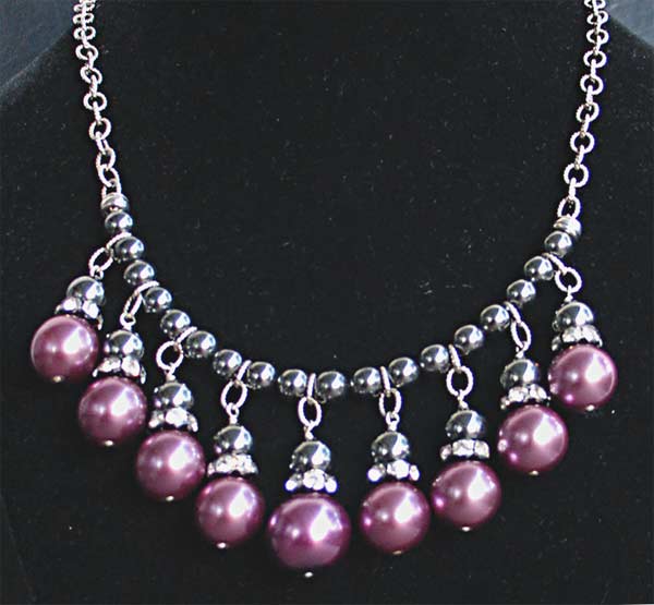Item #0504 Shell Pearl Hematite Drops Necklace Shell Pearls/Hematite/Crystal Rondelles Drops, Sterling Silver beads, chain and clasp. Length 16" to 20"